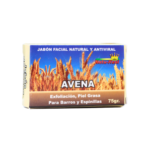 Jabón facial natural de avena de 75 gramos, ideal para exfoliación de piel grasa. Formulado para combatir barros y espinillas, este producto es antiviral y está diseñado para limpiar y purificar la piel. Perfecto para quienes buscan una solución efectiva y natural para el cuidado facial.